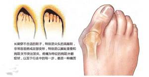 其发病除了遗传因素外,多与穿尖头鞋与高跟鞋有很大的关系。临床表现为踇囊炎疼痛和前足畸形,影响患者的生活、工作和学习,使病人的生活质量明显下降。